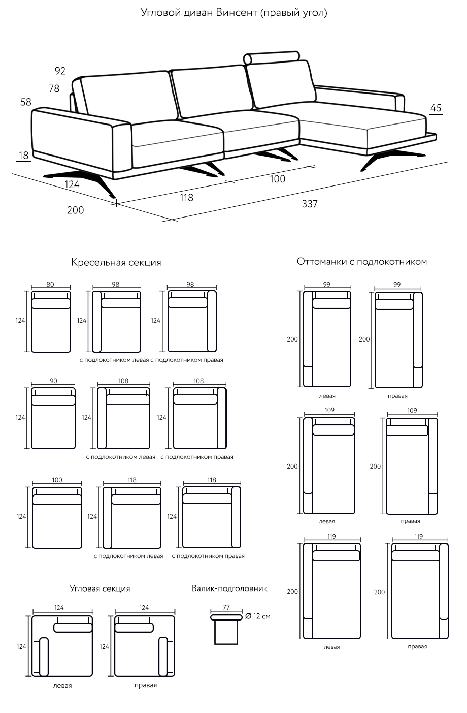 Размер модуля оттоманка компенсирует отсутствие раскладывающегося спального места у диванов коллекции «Винсент». Благодаря механизму шагающей спинки, оттоманка очень удобна для людей с разным ростом и комплекцией и можно полноценно отдохнуть на диване. В положении спинки «релакс», глубина оттоманки составляет 183 см, что при достаточной ширине, позволяет использовать ее как дополнительное спальное место для задержавшихся на ночь гостей. Размер спального места оттоманки, ШхГ: 100х183 см.