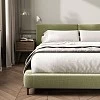 - Стильное мягкое изголовье и основа кровати в тканях из рабочих коллекций;