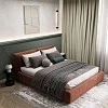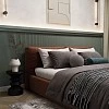 - Стильное мягкое изголовье и основание кровати в тканях из рабочих коллекций;